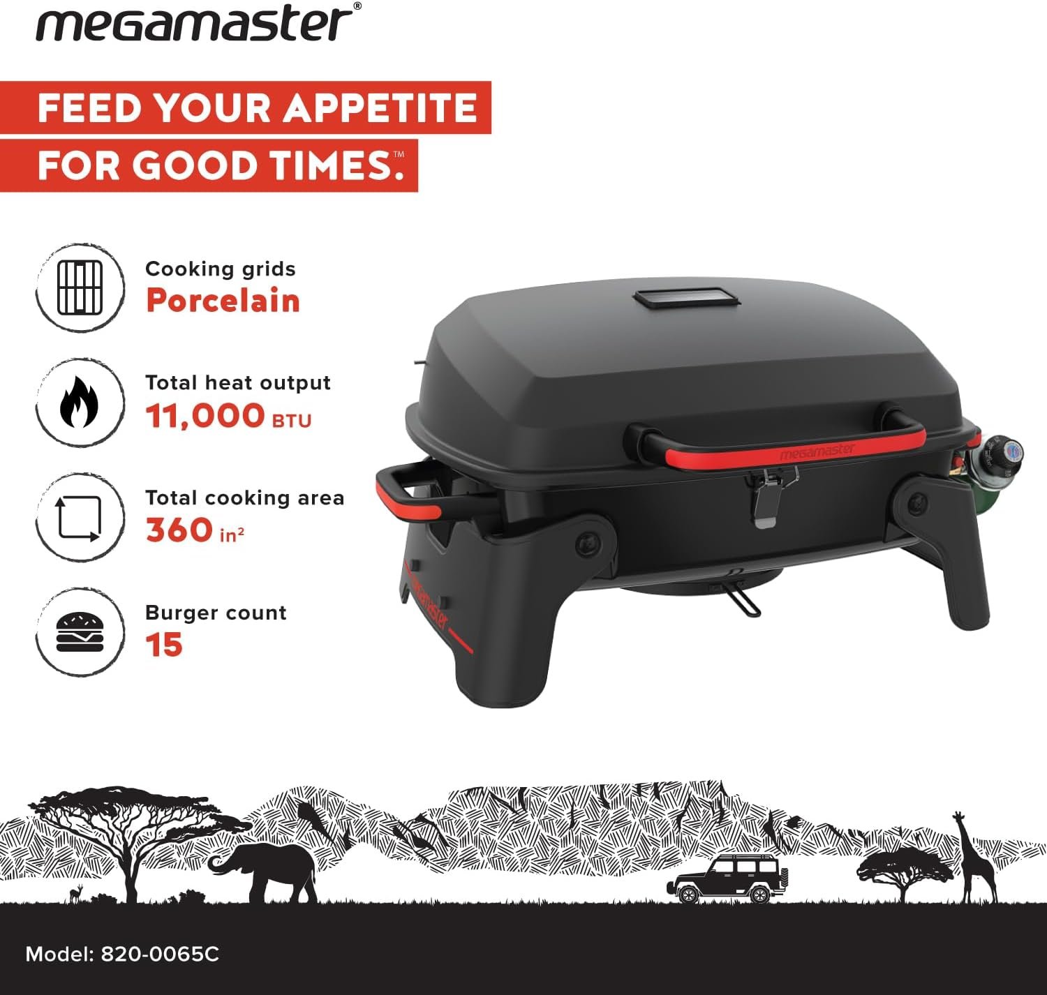 The Megamaster 820-0065C Propane Grill is a compact, high-performance BBQ grill designed for patios and small outdoor spaces. With a 12,000 BTU burner and porcelain-coated cooking grates, it delivers consistent heat and easy cleaning. Perfect for grilling enthusiasts who want reliable performance without taking up too much space — get grilling with this portable powerhouse.