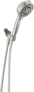 This model from Moen features a spot-resistant brushed nickel finish that keeps fingerprints and water spots at bay. The 6 spray settings range from relaxing massage to rinsing, adding remarkable versatility. Thanks to an intuitive design, even those with limited mobility will find it accessible and user-friendly.