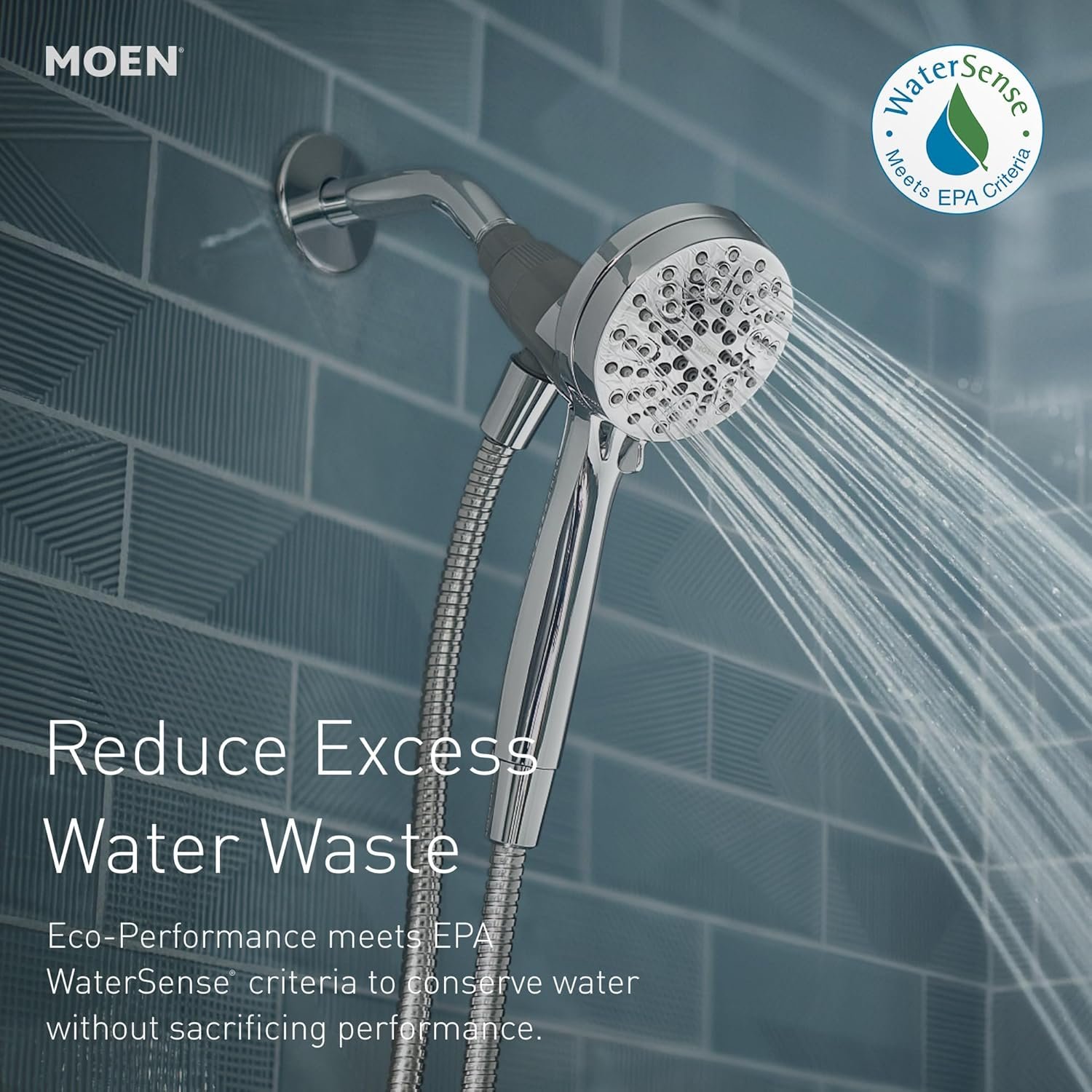 The detachable wand comes with a kink-free, 60-inch shower hose for maximum reach—ideal for kids, pets, and rinsing the tub. According to Moen’s official page, this unit is EPA WaterSense certified for responsible water use. Everyday chores and spa-like experiences combine in one easy install shower upgrade.